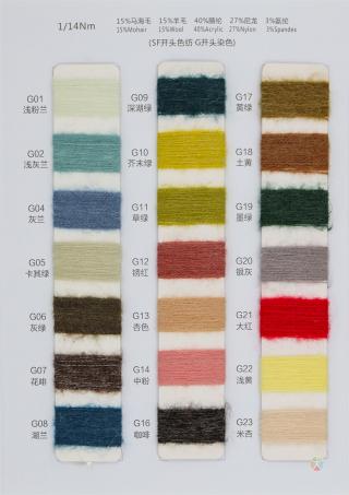 成分:15%马海毛 15%羊毛 40%腈纶 27%尼龙 3%氨纶