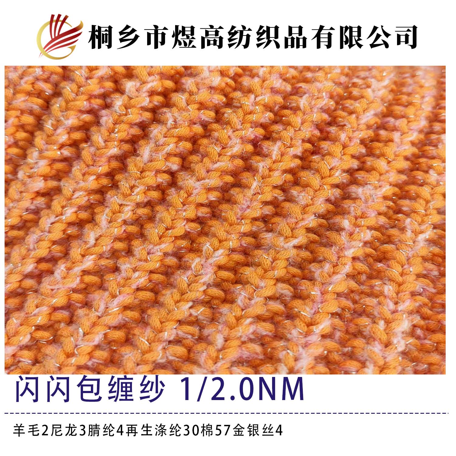 羊毛2尼龙3腈纶4再生涤纶30棉57金银丝4